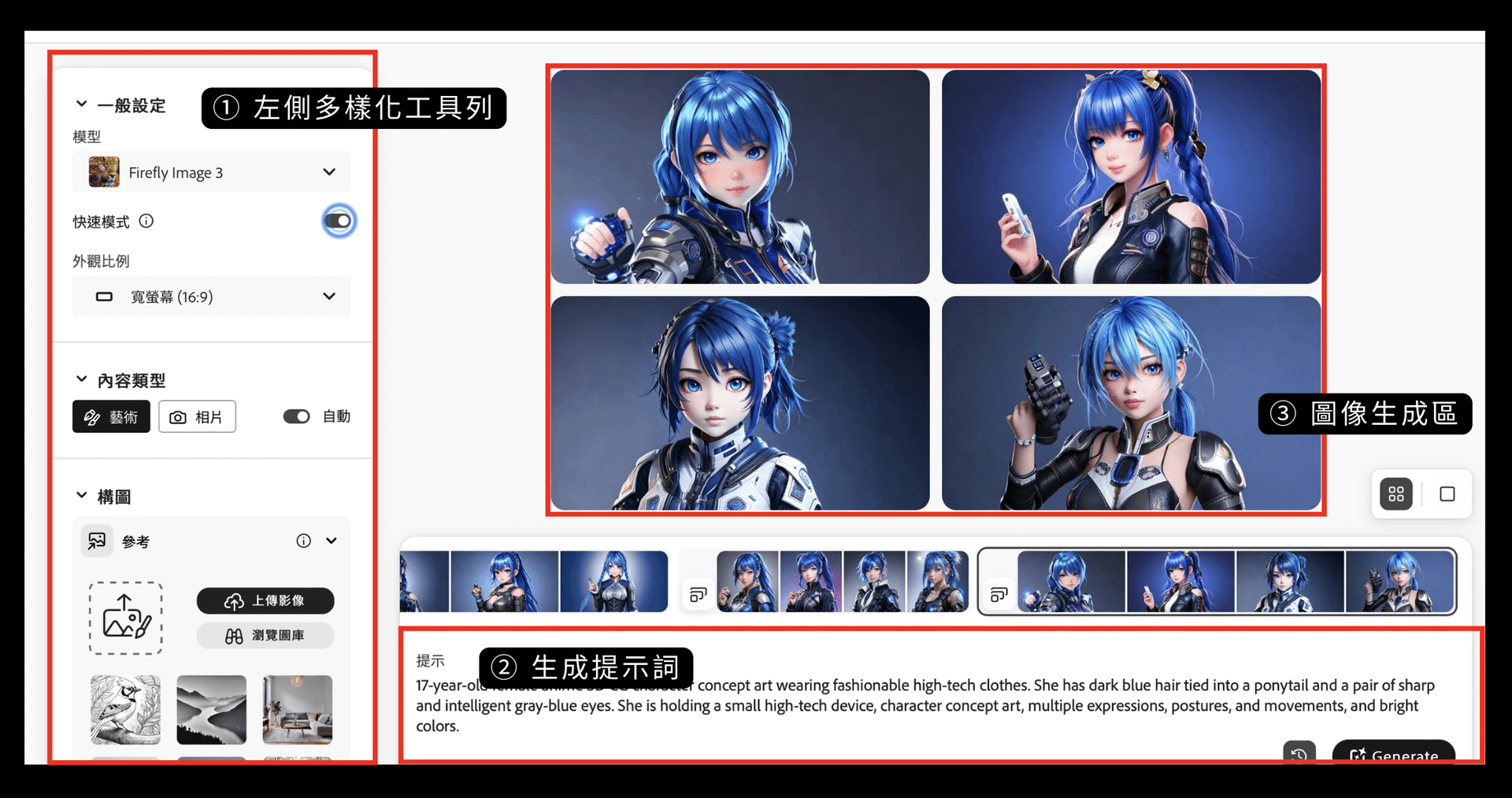 【步驟一:生成與調整】Adobe Firefly 介面功能與操作,挑選代表性的優質作品