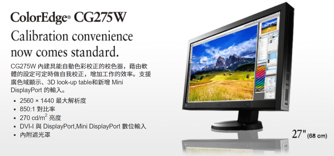 EIZO 艾紫歐:日系廠商 EIZO 的 ColorEdge 系列是專業顯示領域的標竿,其在色彩校正方面的技術積累深厚。早自2010年代起,EIZO 就在ColorEdge CG系列中內建可自動翻出的小型校色感測器,搭配 ColorNavigator 軟體可定時自動校正