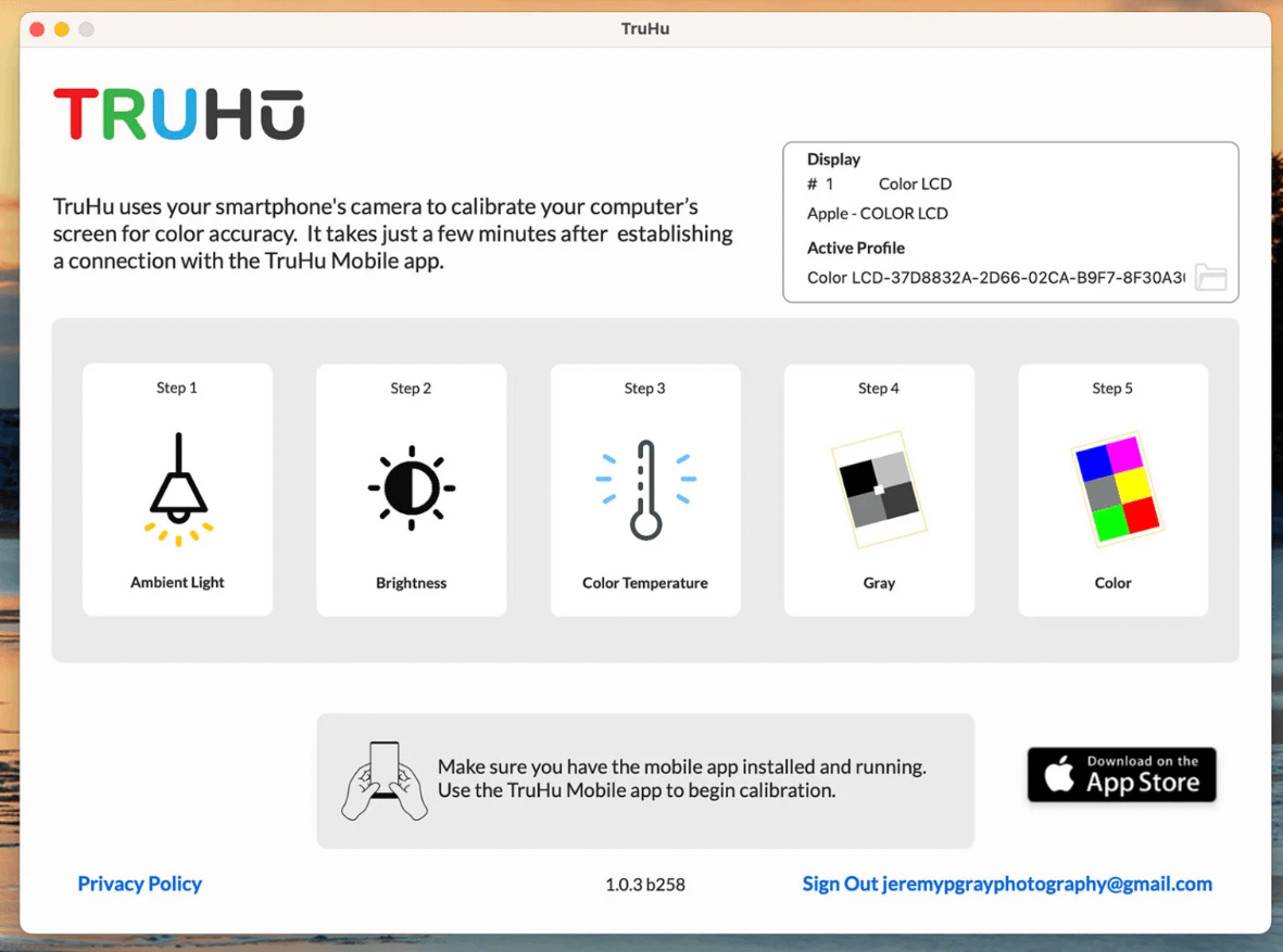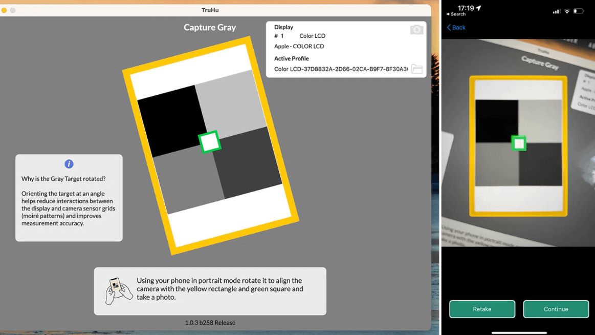 TruHu 智慧手機校色應用:這是一款由新創團隊推出的軟硬體結合方案,使用者利用 iPhone 相機搭配桌面App,即可在macOS上生成螢幕ICC檔進行校色