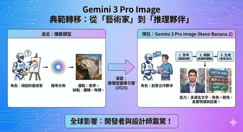 Gemini 3 Pro Image(Nano Banana 2)的發布,不僅僅是解析度的提升,更是 AI 從「直覺生成」邁向「邏輯推理」的里程碑。它證明了當強大的語言模型與圖像生成模型深度結合時,能夠解決過去被認為是 AI 「硬傷」的文字渲染、空間邏輯與角色一致性問題。