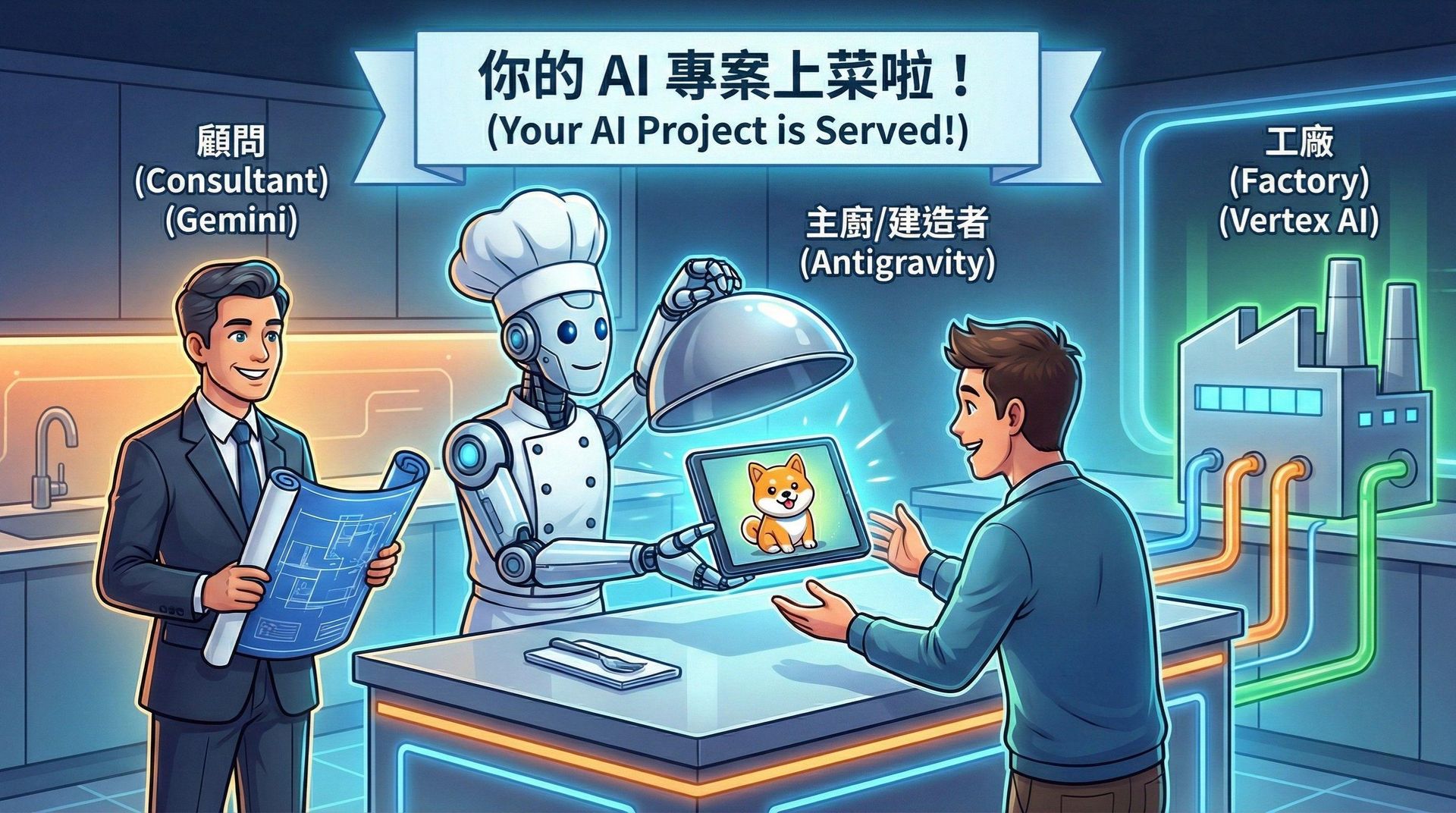 在 Google 的 AI 生態系中,這三個角色分別對應了 Gemini、Antigravity 和 Vertex AI Studio。