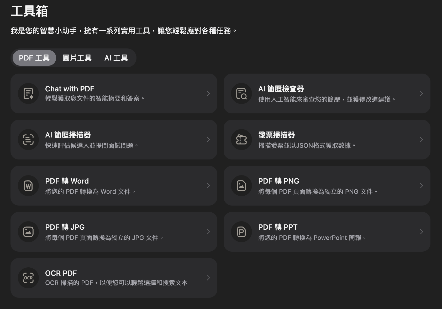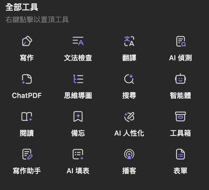 - 「摘要」、「翻譯」與「寫作助手」等工具也均在主介面中一目了然。