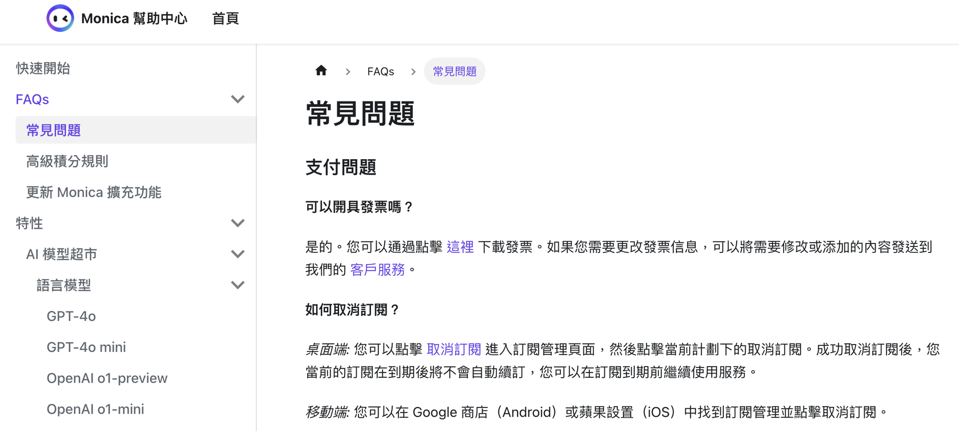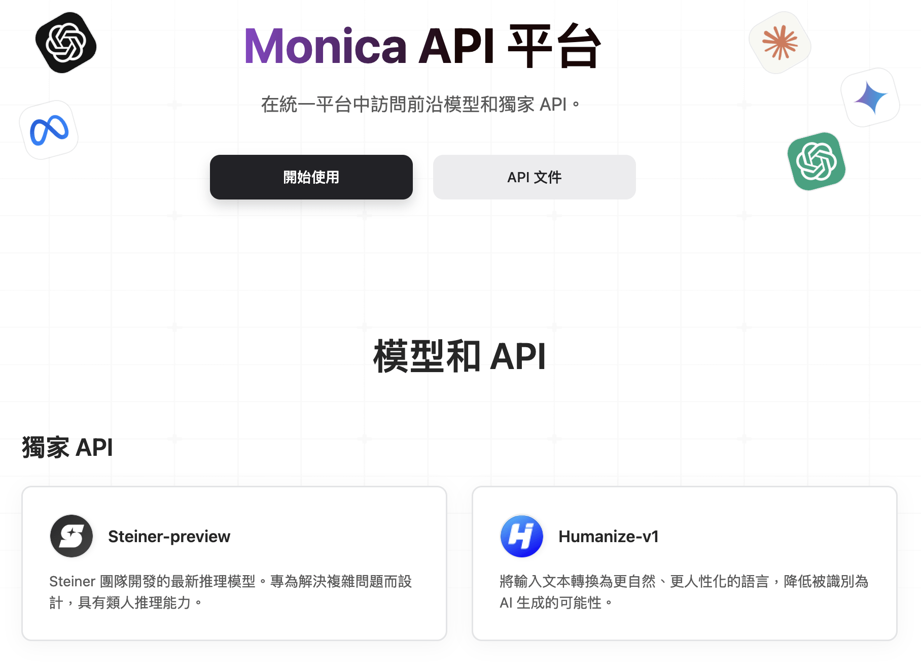 - 詳細 API 文檔及範例程式碼均可在 Monica AI 開發者專區中找到。