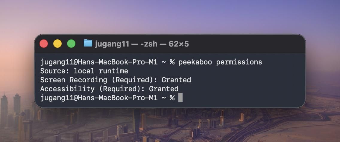 | 檢查權限狀態 | peekaboo permissions status | 確認螢幕錄製和輔助使用權限是否已授權 |
