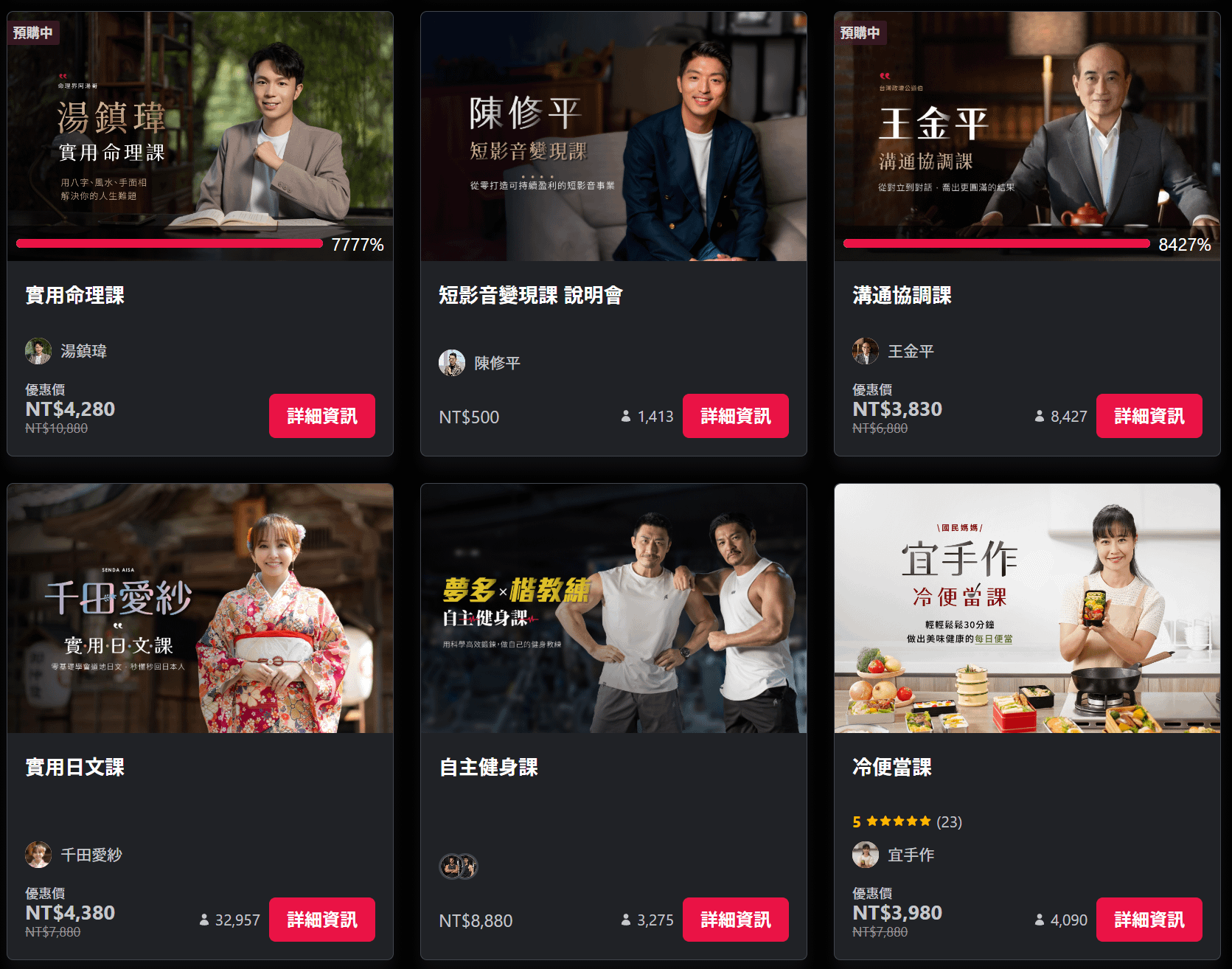 名人/KOL行銷策略: 幾乎所有平台都不同程度依賴名人效應來推廣課程,但方式各異: